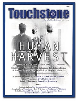 Touchstone: A Journal of Mere Christianity “Mary Tyler Moore’s Autograph & What I Did with It” first appeared in the June 2001 issue of Touchstone. Mary Tyler Moore’s Autograph & What I Did with ItRussell E. Saltzman on Stem Cell Research I got on the elevator in the Hart Senate Office Building heading for the second-floor hearing room, where I was to testify on embryonic stem cell research before a Senate subcommittee. I was there at the request of the National Conference of Catholic Bishops’ Secretariat for Pro-Life Activities. The door was closing but, at the last moment, in rushed Mary Tyler Moore, her husband, her publicist and a couple of other people with her. She was there to testify on the same topic as I, along with Michael J. Fox and several others. One doesn’t expect to see a Hollywood celebrity in an ordinary elevator. It was a second or two before full recognition kicked in, and then, pow! I knew this woman. Gee whiz, I had had a crush on her twice, once when she was Laura Petrie and again when she was Mary Richards. She’s never been more than thirteen years older than me, a fact I scoped out when I was sixteen. I can dismiss a sixteen-year-old’s crush, but when she was at WJM I was older and the crush was, well, more sophisticated. Now she’s standing this close to me. I tried to smile at her, but I think my mouth hanging open got in the way. Following them out of the elevator I put myself right behind Moore, feeling like a stalker. My college daughter wanted Moore’s autograph, and I was going to get it. If I was going to speak to her, it had to be now. I called her name; she stopped. I introduced myself, told her I was testifying also, but in opposition, and would she please give me her autograph for my daughter Elizabeth. “Only,” she joked, “if you promise to change your testimony.” But she gladly took the paper in my hand, cheerfully signed it “To Elizabeth with best wishes.” Above the i in wishes she drew a little heart, just as Mary Richards would have done. Embryos Going to Waste The September 14 hearings were before the Senate Appropriations Subcommittee on Labor, Health and Human Services, and Education—congressional committee titles are topical catch basins—chaired by Sen. Arlen Specter (R-Pennsylvania). The ranking minority member is Sen. Tom Harkin (D-Iowa). The two senators are urging legislation to allow the National Institutes of Health (NIH) to use taxpayer funds to acquire and destroy human embryos for the purposes of stem cell research. Present law allows the NIH to make grants for research on embryonic stem cells, but only, in a bookkeeping sleight-of-hand arrangement, if private funds are used to destroy the embryo and extract the cells. Under the Specter/Harkin bill, the NIH could spend federal money to secure (no one is saying “purchase”) a steady supply of human embryos that could be destroyed (no one is saying “killed”) under direct NIH auspices. The embryos in question—estimates suggest there are from 100,000 to 150,000—are “leftovers” from fertility clinics, by-products of in-vitro fertilization (INF) attempts. INF therapy may be a boon to childless couples who can afford the procedure, which often requires multiple attempts, but it has left us with awful questions of what to do with all the extra embryos. For Harkin and Specter and the NIH, these embryos are just going to waste. If they can save some lives, so it is argued, it’s better to use ’em than lose ’em. Stem cells, so it is alleged, offer a potential cure for an array of ailments. They are undifferentiated cells that can, in theory, become any human cell you would ever want or need. Grow those little things forward so they differentiate into healthy organ and nerve cells, and Parkinson’s disease, diabetes, Amyotrophic Lateral Sclerosis (Lou Gehrig’s disease)—the list is fairly endless—will all become but distant memories in one of the greatest medical advances of the new century. It swiftly becomes a problematic business, though, when the research focuses on human embryos as the source for this potential achievement. We are talking now of “leftovers” that are going to “waste.” Soon we shall be speaking of producing and destroying embryos explicitly for research. The “slippery slope” is slippery for a reason. The issue becomes distinctly problematic when ample evidence points to other stem cell sources that are readily available for exactly the same kind of investigations. Umbilical cord blood and human placentas are rich in stem cells and offer as much or more availability as human embryos, and do so entirely without any moral objection. For that matter, clinical trials with adult stem cells extracted from a patient’s own bone marrow are perhaps a mere two to three years away, according to a researcher’s testimony before the subcommittee. There is no evidence to suggest that trials with embryonic stem cells are nearly that close. Yet there is an unseemly haste to employ a means that, by itself, carries with it the greatest ethical objections imaginable. The prospect of stem cell therapy derived from human embryonic research—involving the destruction of a human embryo—touches me, as a diabetic, in a most profound way. I would never consent to any treatment for my diabetes that directly or indirectly came about as the result of destroying a human embryo. What I find disturbing about this incessant rush to harvest stem cells from embryos is the fact that no researcher to date has been able to develop a pancreatic cell from the techniques presently used, this while there are several promising avenues of research that do not involve destruction of a human embryo. Most recently, I have learned about investigations by Canadian researchers that employed pancreatic islet cells from cadavers. The technique successfully eliminated the insulin-dependence of several diabetics who received the procedure. The procedure i