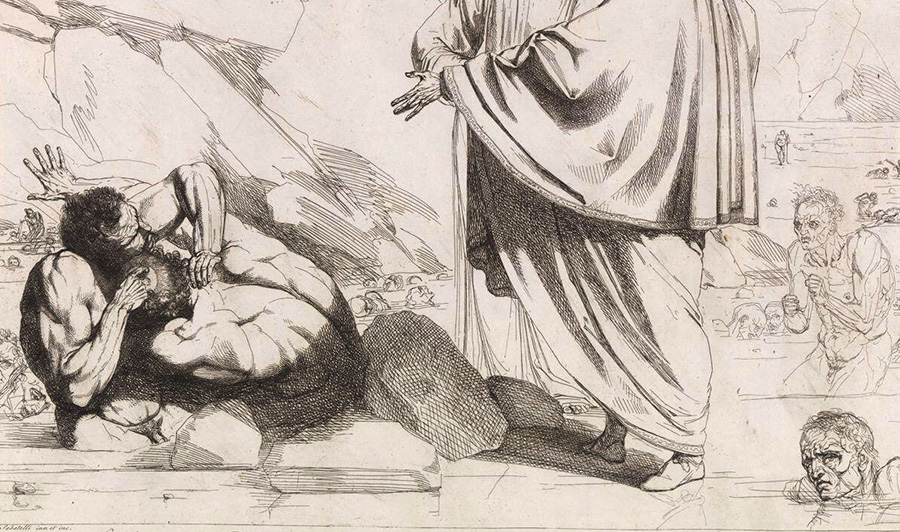 When Dante plunges into the dark, he grasps the very bottom. When he reaches up, he goes beyond the stars. Other poets are equally broad in their oeuvres, but only Dante achieves this breadth in a single episode of 94 lines—the penultimate canto of Inferno, XXXIII, in which Dante and Virgil come upon Count Ugolino della Gherardesca eating Archbishop Ruggieri degli Ubaldini.